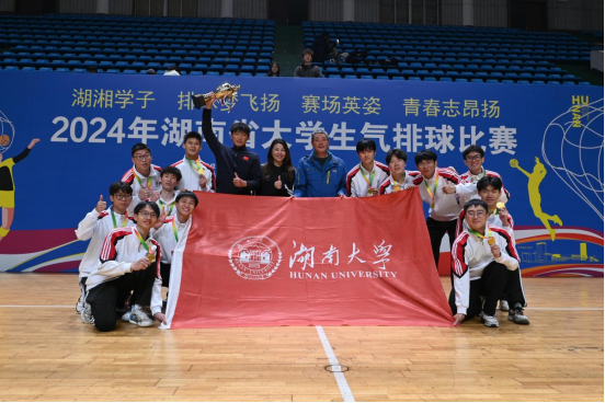 12月12日,2024年湖南省大学生气排球比赛在湖南师范大学华体会(中国)顺利完赛,我校男子气排球队参加本次比赛并取得本科阳光男子组冠军。