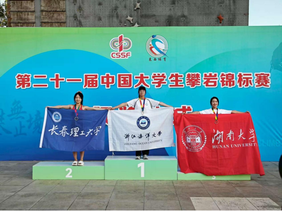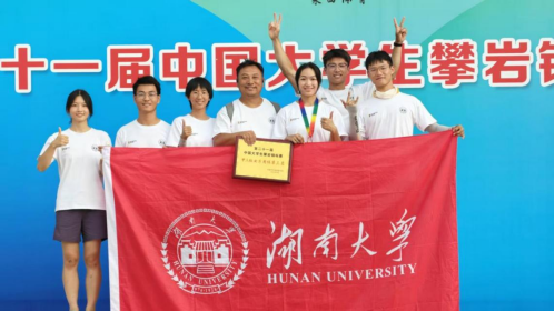 经过四天的激烈角逐,我校攀岩队队员团结一致、顽强拼搏,勇夺个人、团体双佳绩,在岩壁上尽展湖大学子的风采。本届比赛是湖南大学首次组队参与该项目的国家级赛事。