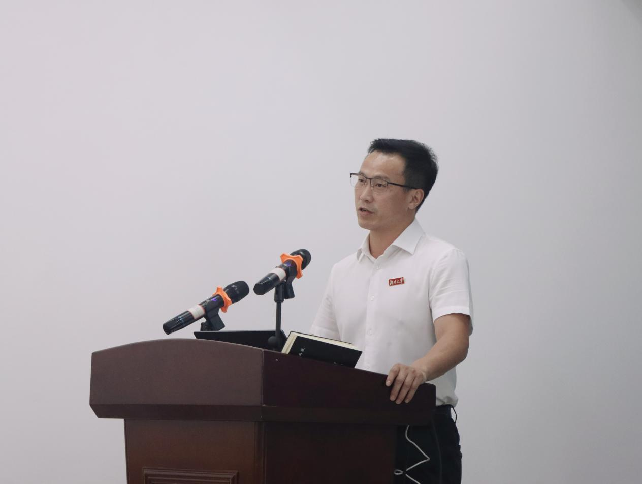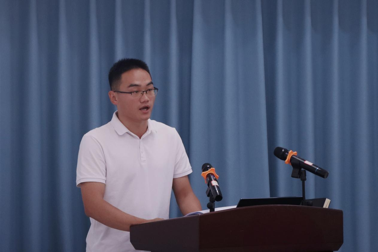 2023级硕士研究生、学生党支部书记赵乐作为老生代表发言。他结合自身经历,鼓励新生以“惟楚有材”的自信明确目标,以“豁达通融”的胸怀平衡学业与生活,以“敢为人先”的勇气开启新征程。