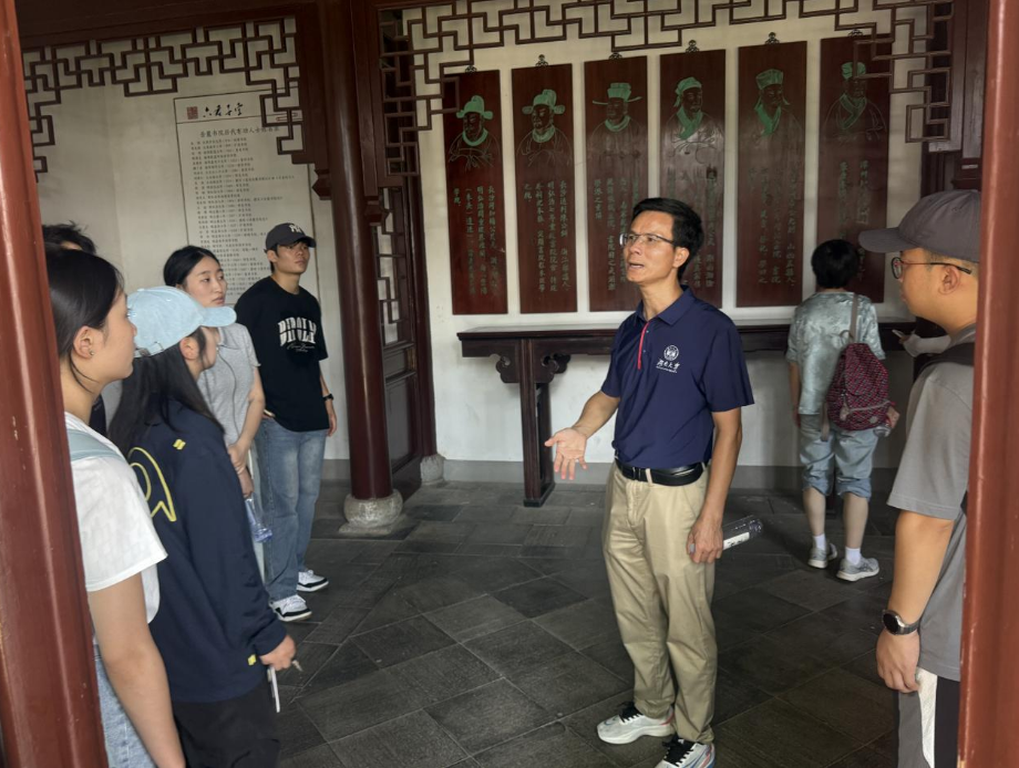 在李老师的引领下,新生们从自卑亭开始,依次到达湖南大学红楼、岳麓书院、书院博物馆……每到一处,他都会停下脚步,结合眼前的建筑风貌和历史背景,向新生们讲述其中蕴含的人文故事与精神传承,彰显岳麓书院千年文脉的深厚底蕴与辉煌历史成就。在领略到诸多优秀的先辈和他们身上传经世致用、传道济民的湖湘文化之后,同学们都惊叹于书院历史之悠久、文化之厚重、先贤之优秀。
