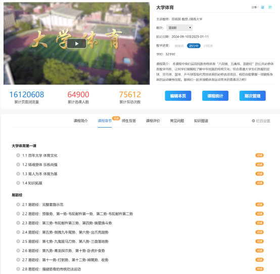 根据《华体会官方网页版开展2019年线下、线上线下混合式、社会实践省级一流本科课程认定的通知》(湘教通〔2019〕349号)要求,经学校申报,湖南省教育厅组织专家评审,认定484门课程为2019年湖南省普通高校省级一流本科课程,其中,线下一流本科课程292门、线上线下混合式一流本科课程159门、社会实践一流本科课程33门。其中我院由田祖国老师主讲的《大学体育(1)》获评此次线上线下混合式一流本科课程。(附部分截图)