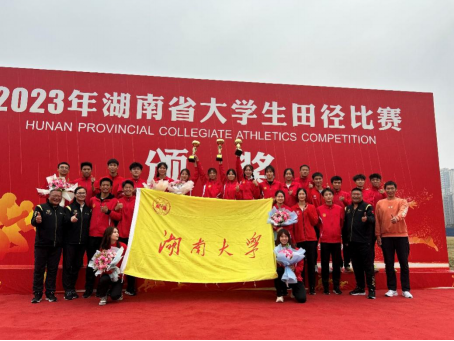 10月26日,历时6天的2023年湖南省大学生田径比赛在湖南科技大学落下帷幕。在领队王祚亮,教练员袁磊、姚学英、余滨、彭钢、睢鑫钰的带领下,我校24名运动健儿顽强拼搏,斩获金牌9枚、银牌13枚、铜牌9枚,夺得男子团体第一名(154分)、女子团体第一名(172.5分)、男女团体第一名(326.5分)。