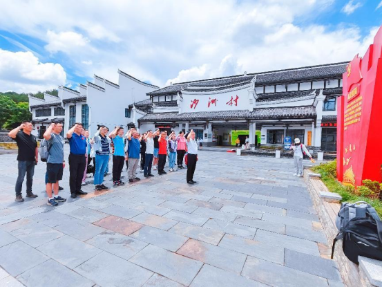 全体党员及师生在沙洲村“半条被子”陈列馆前合影留念