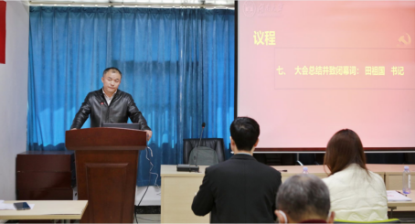 院党委书记田祖国致闭幕词,他对全院教职员工一年的辛勤付出表示感谢,指出2023年是耕耘收获的一年,在全体老师的共同努力下,学院取得了不俗的成绩、体现了良好的发展势头。本次大会顺利圆满地完成了预定的各项任务,大会的召开是我们学院全体教职工生活中的一件大事,是全体师生员工参与学院民主管理、共谋学院发展的一次总结会,也是充分发挥师生员工智慧和凝聚教职工力量的一个重要载体,它将使全院上下统一思想,振奋精神,同心谋发展,同行创未来。