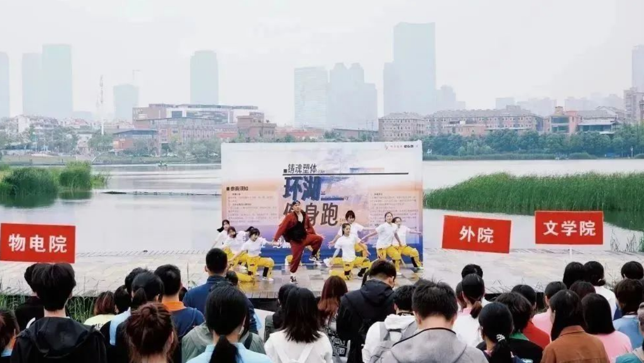 5月7日上午,华体会官方网页版和建筑与规划学院联合承办的“铸魂塑体” 健身跑启动仪式在后湖国际艺术园如约而至。