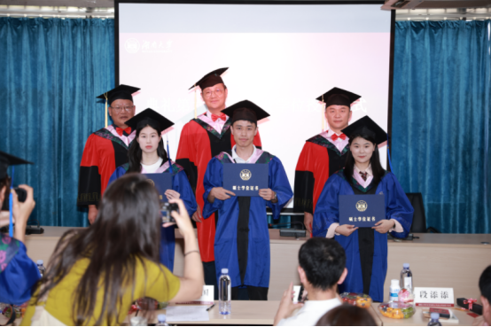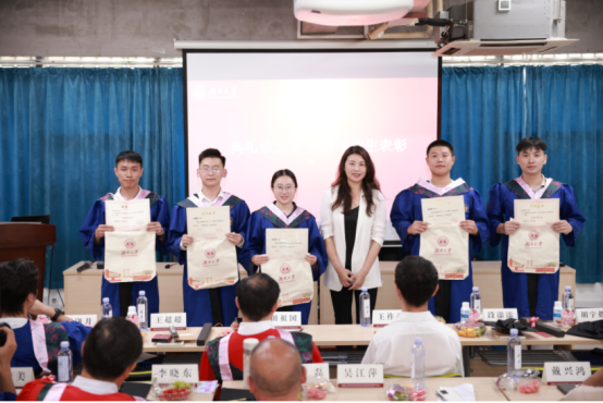最后,学院党委书记、导师田祖国深情寄语毕业生,十八条小舟即将启航,希望同学们毕业后要保持豁达明亮、上进拼搏、好学友善的心态;在工作学习中持续发扬吃得苦、霸得蛮、耐得烦的作风,在学与行中持续进步,做有理想、有精气神的有为青年。