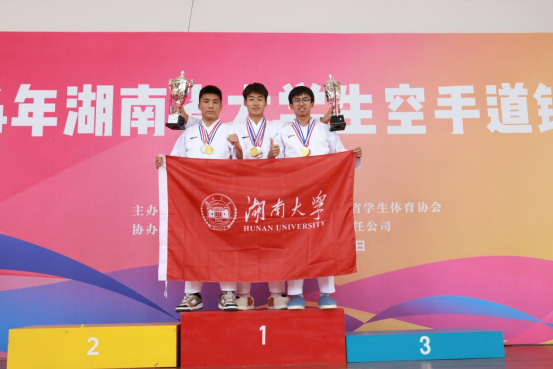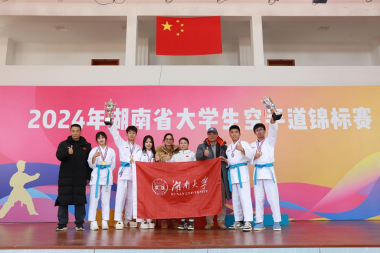 2024年12月29日,湖南省大学生空手道锦标赛在长沙市永瑞体育公园圆满落幕,我校学生获得3金5银3铜的佳绩,包揽甲组男子组手冠、亚、季军,女子组手冠军、男子团体组手、女子团体组手亚军,女子个人型冠军、亚军,男子个人型两项季军、混合团体型亚军。