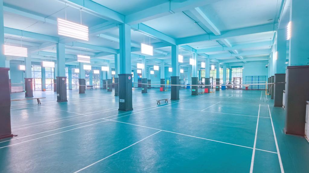 财院校区羽毛球馆设有8块专业塑胶场地,采用专业侧面排光技术, PU塑胶弹性地面,能有效地避免和减少运动损伤,场地边有充足的长椅,为您提供舒适的休息地。